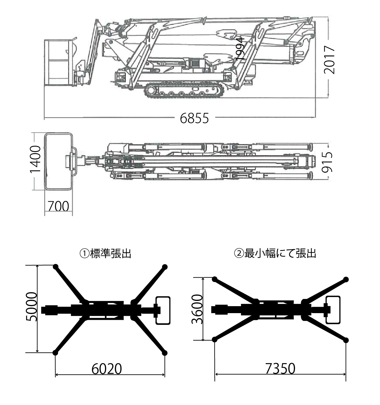登坂能力16.7度、高さ2mのドアから建物に入ることができ段差や狭い間口も進入可能です。バケットを外すと車幅は89cmとなり、さらに狭いゲートの通過も可能。ショッピングモールの吹き抜けなど、これまで足場を組むしかなかった奥まった場所でもお使いいただけます。床にあとが残りにくい白のゴムクローラ仕様です。